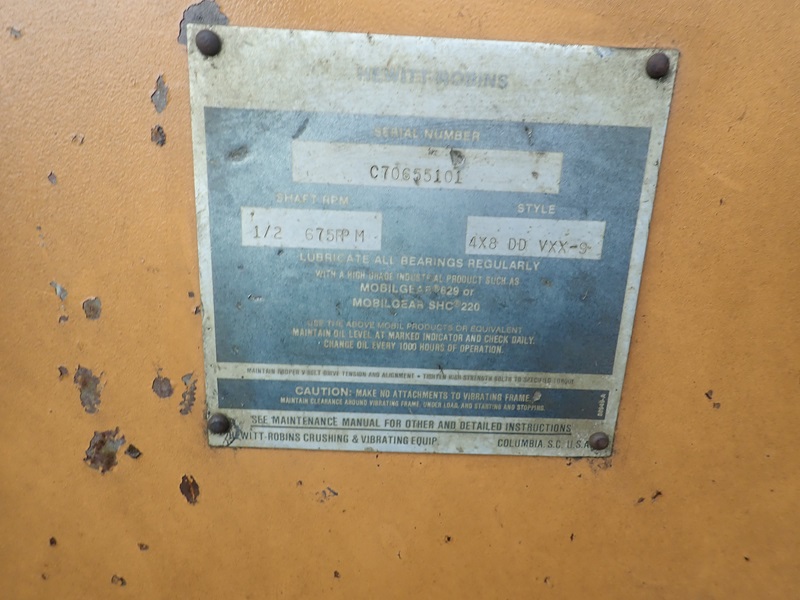 48"X96" 2-DECK VIBRATORY SCREEN, 10 HP DRIVE, BLAZER HR4X8 STAND W/36"X12' OUTFEED CONVEYOR, STEEL SUPPORTS, CATWALK