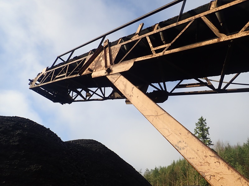 APPROX. 30"X60' ADJUSTABLE HEIGHT RADIAL STACKING CONVEYOR (MISSING WHEEL DRIVE)