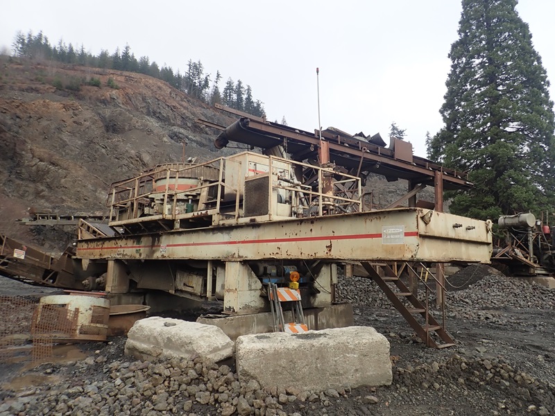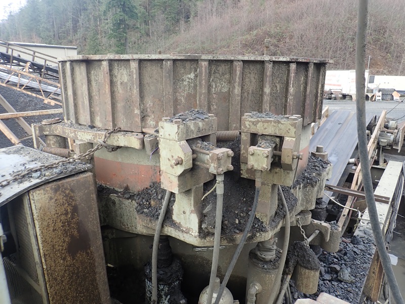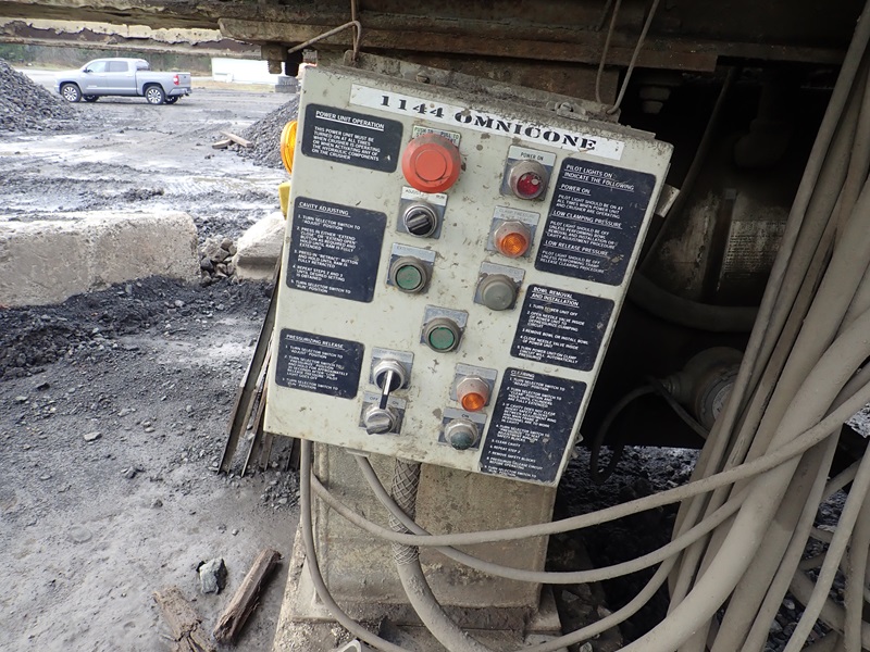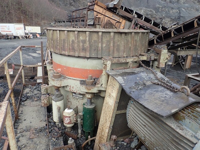 47" T/A PORTABLE CONE CRUSHER, 200 HP DRIVE, HYDRAULIC UNIT, ELECTRICAL, 36"X18' INCLINE DISCHARGE CONVEYOR (NOTE: CONE REBUILT APPROX. 18 MONTHS AGO; MISSING RIMS & TIRES)