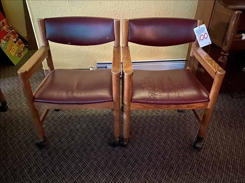 LOT, (9) PADDED WOOD BANQUETTE CHAIRS ON CASTERS (IN BASEMENT)