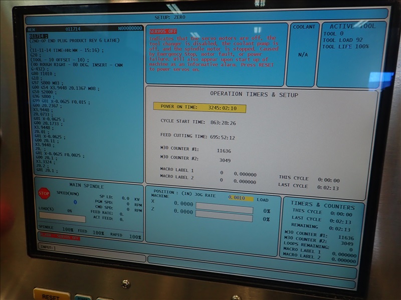 CNC TURNING CENTER, 12-STATION TURRET, TAIL STOCK, THRU SPINDLE, CONTROLS, S/N: 3086413