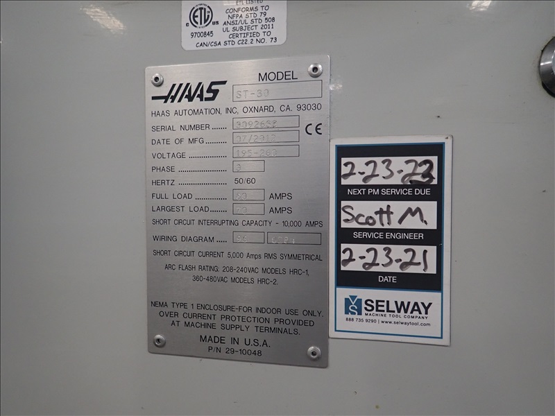CNC TURNING CENTER, 12-STATION TURRET, TAIL STOCK, 3-JAW CHUCK, THRU SPINDLE, CHIP CONVEYOR, HIGH PRESSURE COOLANT, S/N: 3092633