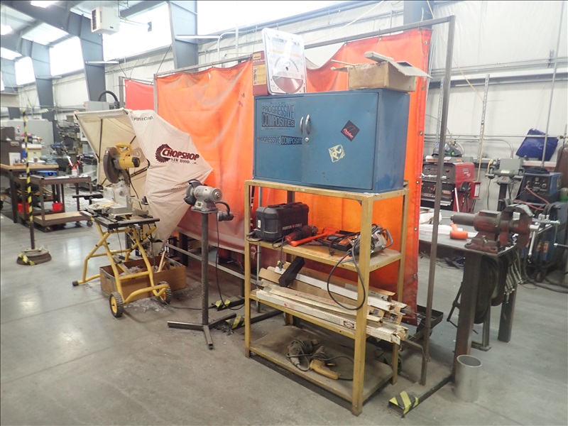 DEWALT SAW, GRINDERS, HAND TOOLS, WELDING CURTAINS & MISC.