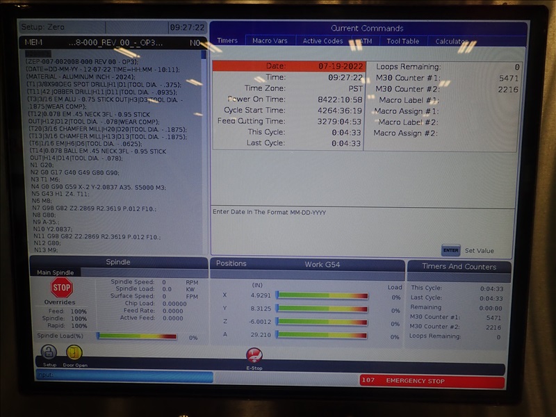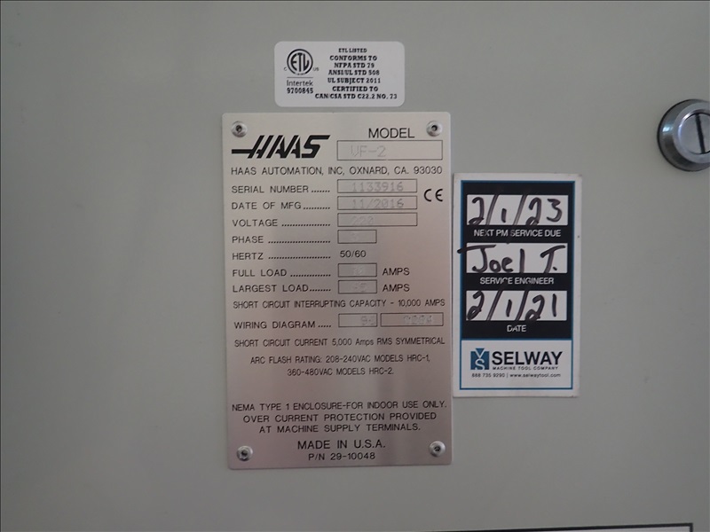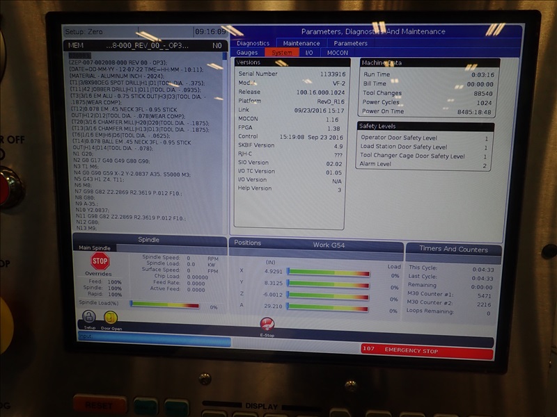 CNC VERTICAL MACHINING CENTER, 24-STATION SIDE MOUNT ATC, 16"X36" TABLE, CHIP AUGER, CONTROLS, 4TH READY, S/N: 1133916
