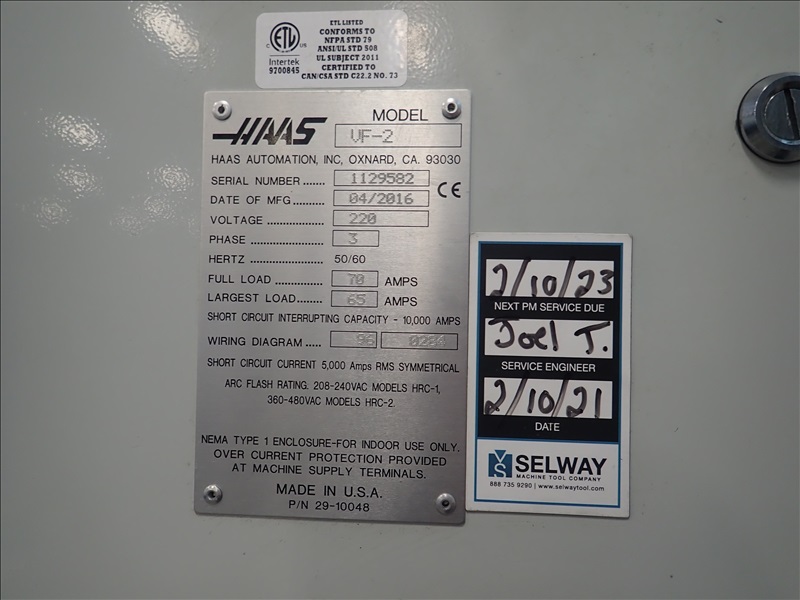 CNC VERTICAL MACHINING CENTER, 24-STATION SIDE MOUNT ATC, 16"X36" TABLE, CHIP AUGER, CONTROLS, 4TH READY, S/N: 1129582