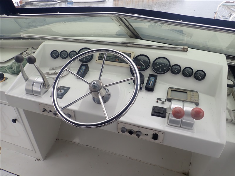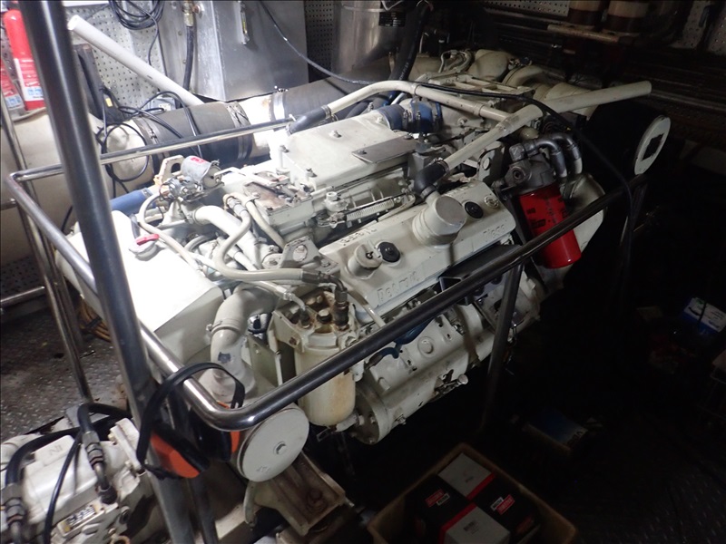 59' CRUISING YACHT AND A LIVE-A-BOARD, FIBERGLASS MODIFIED V-HULL, DESIGNED BY SPARKMAN & STEVENS OF N.Y, 1 OF 11 DESIGN HAVE BEEN CONSTRUCTED (FIBER-CLASS) WITH FORMAL DINING ROOM FORWARD OF THE PILOT HOUSE. THREE STATE ROOMS PLUS CREW QUARTERS (SLEEPS TEN). FOUR BATHROOMS AND SHOWERS AND A FULL SIZE JACUZZI IN THE MASTER STATEROOM WHICH HAS A QUEEN SIZED CUSTOM BED. TWIN DETROIT'S 8V92 TURBO CHARGED AT 735 HP, TWO KOHLER GENERATORS - 8KW & 20KW. 1,400 GALLON TANK.