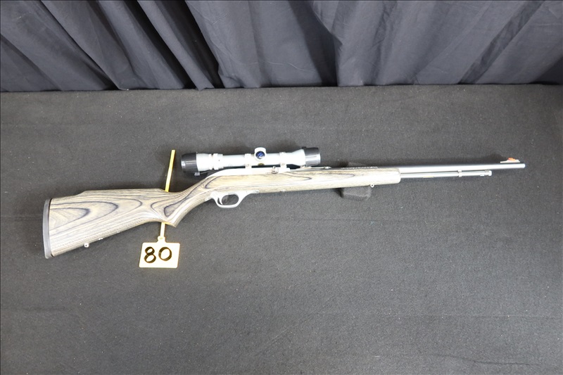 .22 L.R. CAL, STAINLESS BOLT ACTION RIFLE W/SYNTHETIC STOCK, & BUSHNELL 3X-9X32 SCOPE