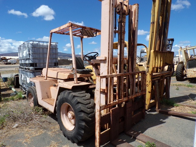 5-TON FORKLIFT, 6 CYL GAS ENGINE (NEEDS WORK)