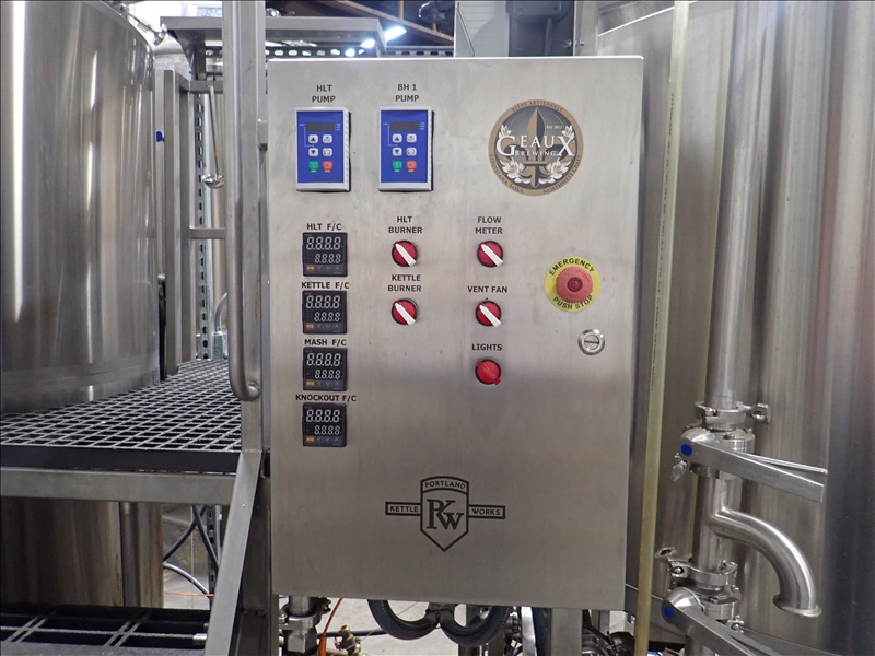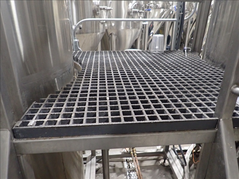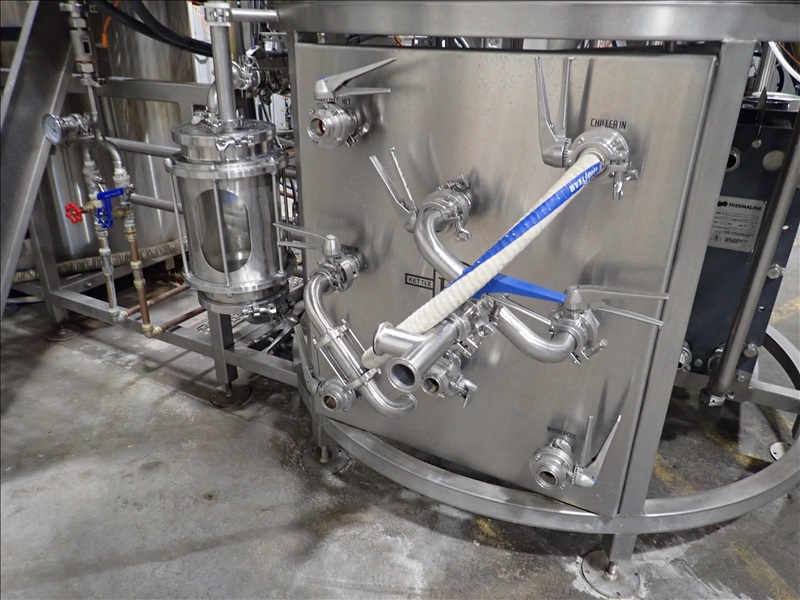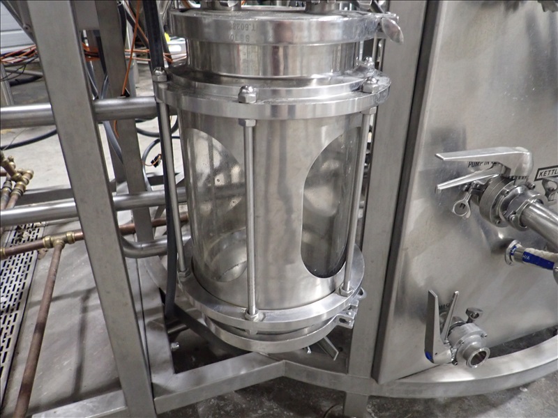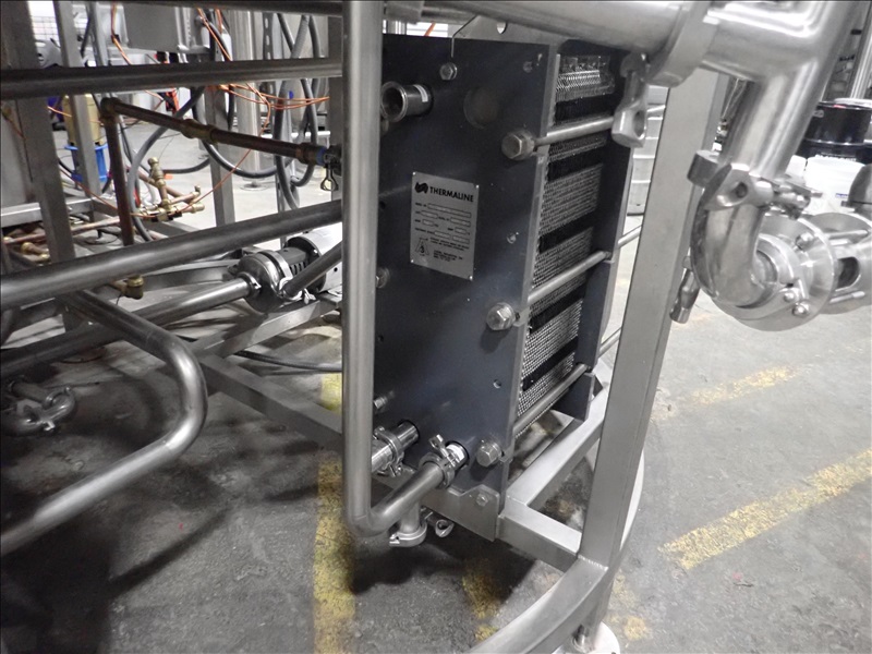 10BBL 3-VESSEL BREWHOUSE, OVERSIZE MASH TUN W/RAKE AND PLOW, GAS FIRED KETTLE, GAS FIRED HLT, MANIFOLD, THERMALINE T8 S-24 HEAT EXCHANGER, (2) TRANSFER PUMPS, CONTROL PANEL, SMV VFDS, PIPING AND CATWALK