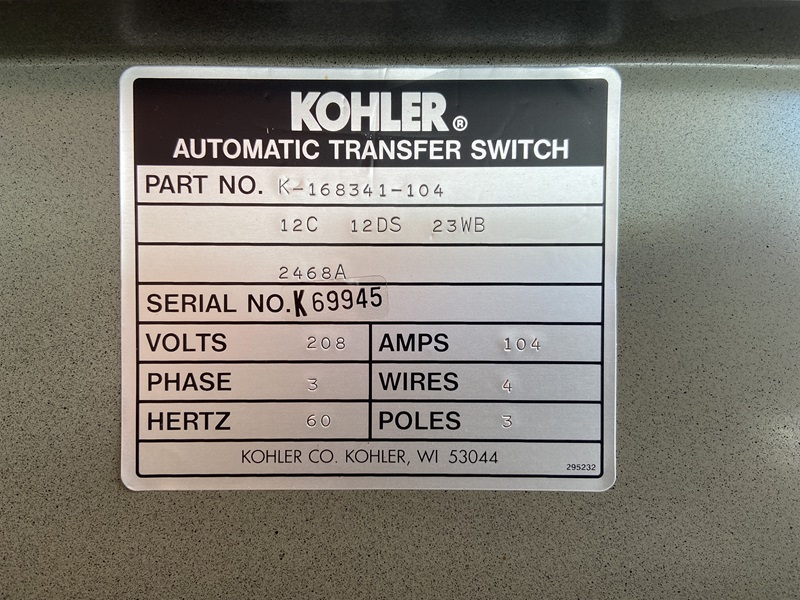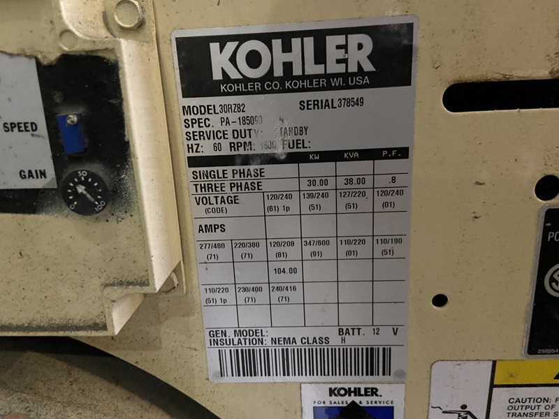 30 KW EMERGENCY STAND-BY PROPANE GENERATOR W/TIER 1 EMISSION STANDSARDS, AUTOMATIC TRANSFER SWITCH, 120/240V 1or3-PH CAP. OUTPUT, 100 GAL. PROPANE TANK, ; HOURS READ: 346