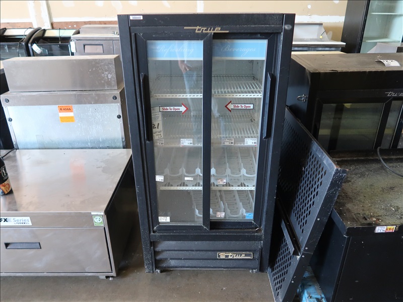 27" SLIDING GLASS DOOR REFER ON CASTERS, 115V (POWER CORD CUT, CAN NOT TEST