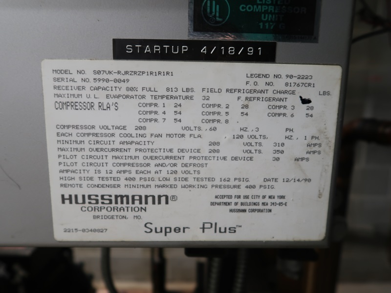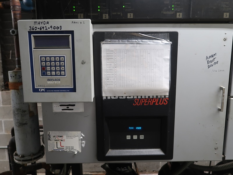REFRIGERATION COMPRESSOR, (7) COPELAND TIC ENGINES W/SENRONIC 0.1 PRESSURE SENSING SYSTEM, REFLECS REFRIGERATION MONITOR & CASE CONTROL, DIGITAL DISPLAY, COPELANDDISCUS PONY MOTOR W/SENRONIC 3 OIL PROTECTION