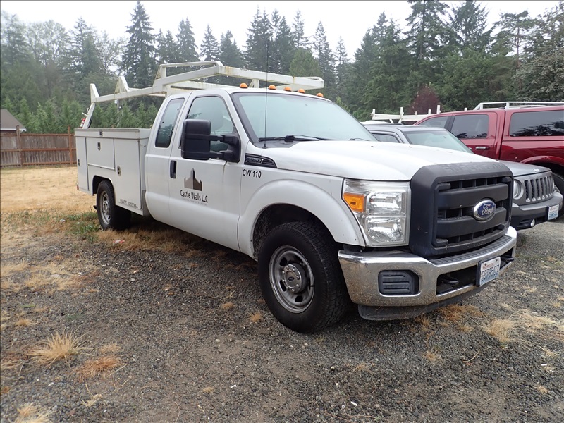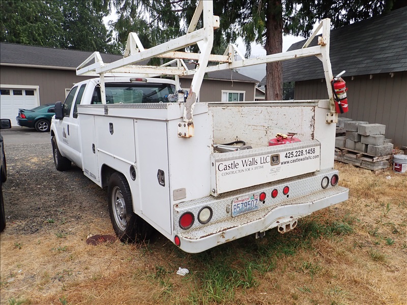 EXTENDED CAB UTILITY TRUCK, V8, GAS, AUTO, AUX. FUEL TANK, RACK, (BAD IGNITION COIL)