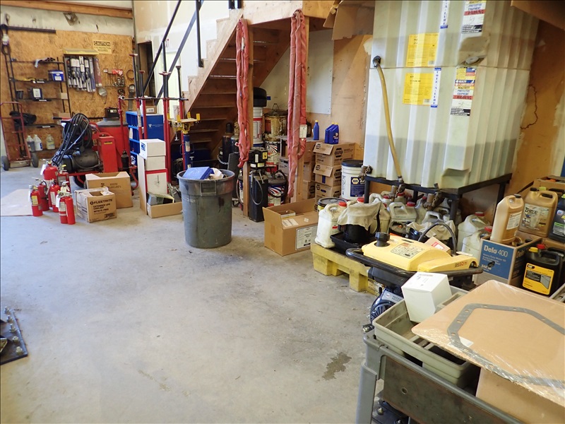GROUP OF HOT WATER PRESSURE WASHER, NUT/BOLT BINS, PARTS CLEANER, CARTS, JUMPING JACK, LUBRICANTS & MISC.