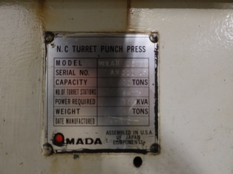 30-TON TURRET PUNCH, 44-STATION ATC, AMADA FANUC-V CONTROLS, 100’'X60” TABLE, 3-PHASE, 15KVA, S/N:AV550113