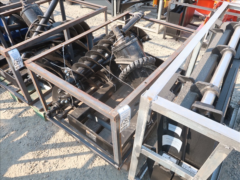 SKID STEER HYDRAULIC AUGER POWER HEAD ATTACHMENT, (1) 14" X 48", (1) 12" X 48" & (1) 6" X 46" AUGER BITS (UNUSED)