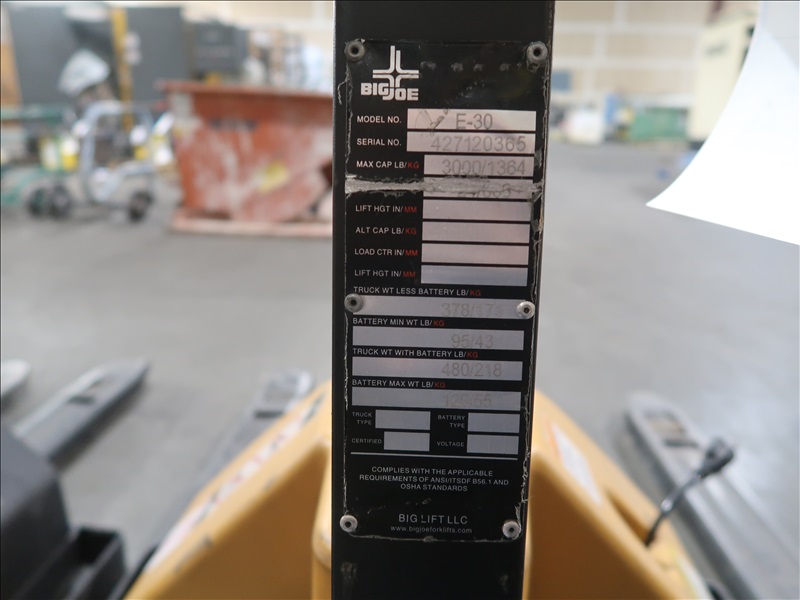 3,000 LB CAP 24V WALK BEHIND ELECTRIC PALLET JACK W/BUILT-IN CHARGER (EMERGENCY STOP BUTTON IS MISSING)