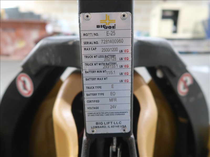 2,500 LB CAP 24V WALK BEHIND ELECTRIC PALLET JACK (NO CHARGER, LIFTS & LOWERS, DOES NOT MOVE, NEEDS REPAIR)