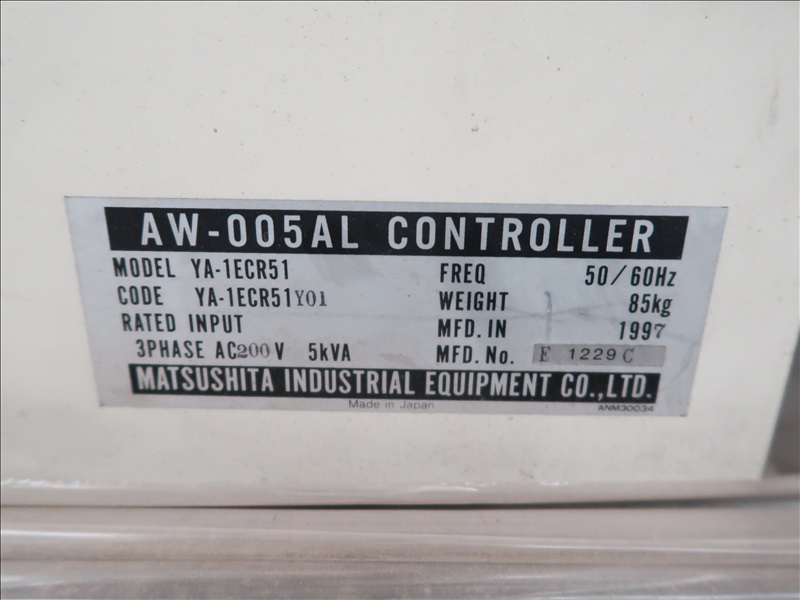MANIPULATOR/ROBOTIC WELDER, MATSUSHITA PMED12MA14AK WIRE FEEDER, MATSUSHITA YA-1ECR51 CONTROLLER W/DIGITAL PENDANT CONTROLS, 60" 2-SIDED ROTARY TABLE, GE 9T21J60006KVA, 3 PHASE TRANSFORMER COMPLETE ENCLOSURE (NO REMOVAL BEFORE MONDAY, OCT 24TH)
