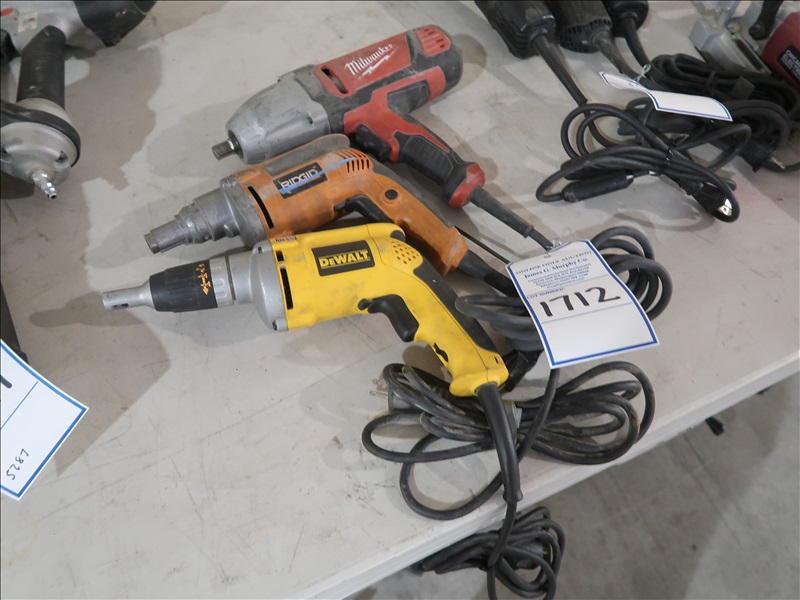 LOT, (2) ASSORTED ELECTRIC SCREW GUNS & (1) MILWAUKEE 1/2" DRIVE ELECTRIC IMPACT GUN, 120V
