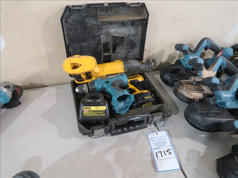 LOT, (1) DEWALT 14.4V CORDLESS DRILL W/CHARGER/BATTERY & CASE, (1) DEWALT 18V CORDLESS RECIPROCATING SAW (NO BATTERY OR CHARGER) & (1) MAKITA DRILL (NO BATTERY OR CHARGER)