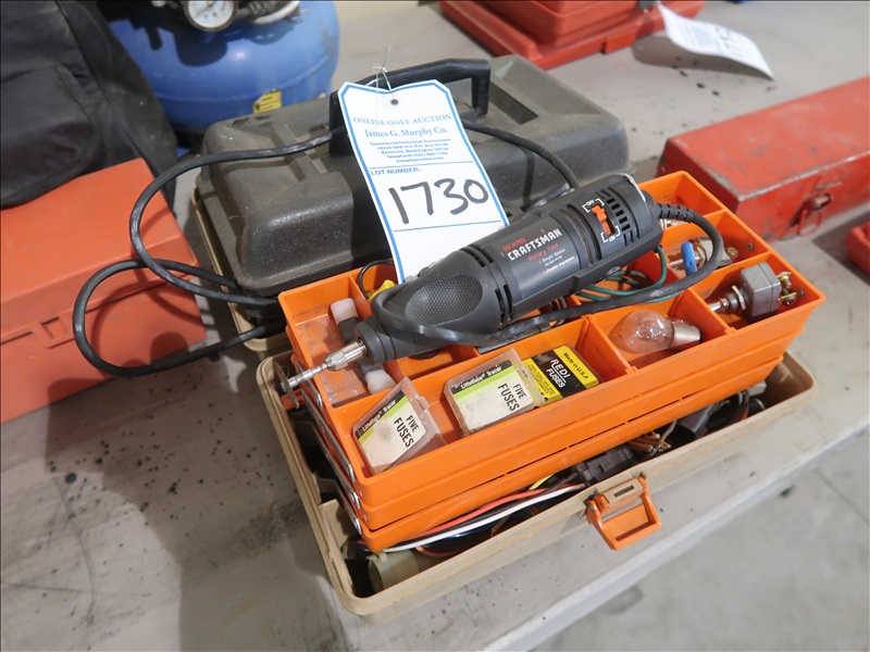 LOT, CRAFTSMAN ROTARY TOOL W/BITS & HARD CASE & (1) BOX OF MISC ELECTRICAL PARTS