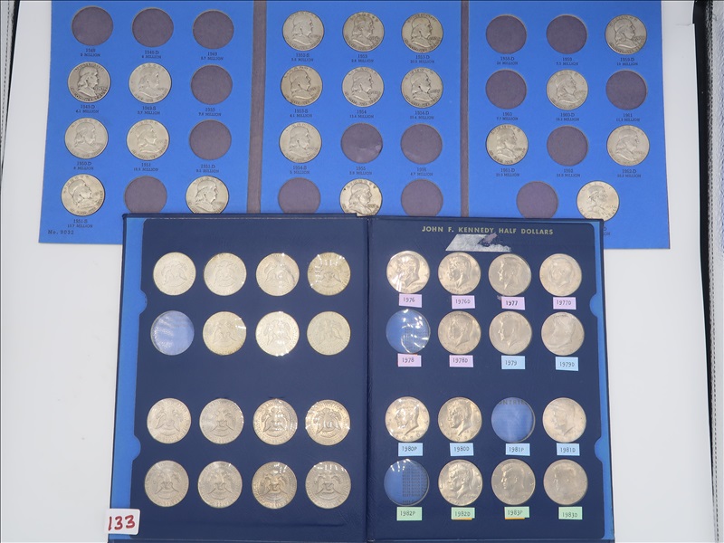LOT, APPROX (14) FRANKLIN, & (28) KENNEDY HALF DOLLARS WITH ALBUMS