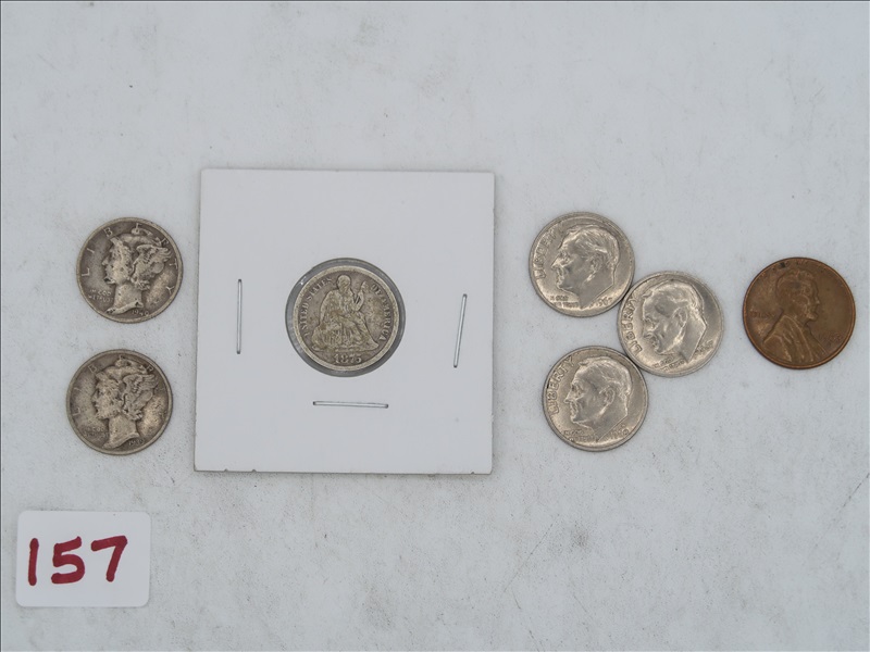 LOT, (1) 1875CC LIBERTY SEATED, (2) MERCURY, & (3) 1965-69 DIMES, (1) 1963 PENNY