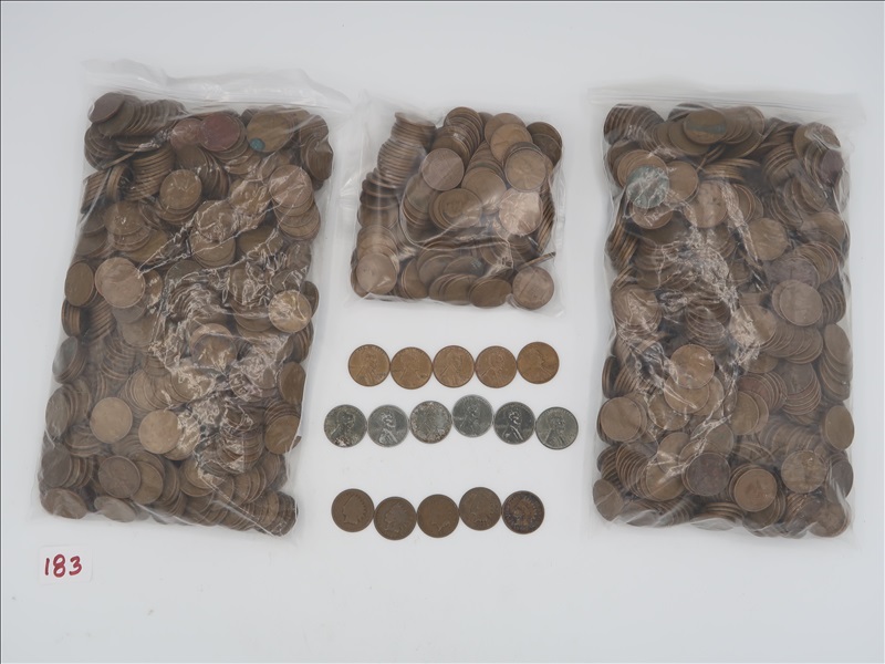 LOT, APPROX (1388) WHEAT, (6) STEEL, & (184) LINCOLN PENNIES