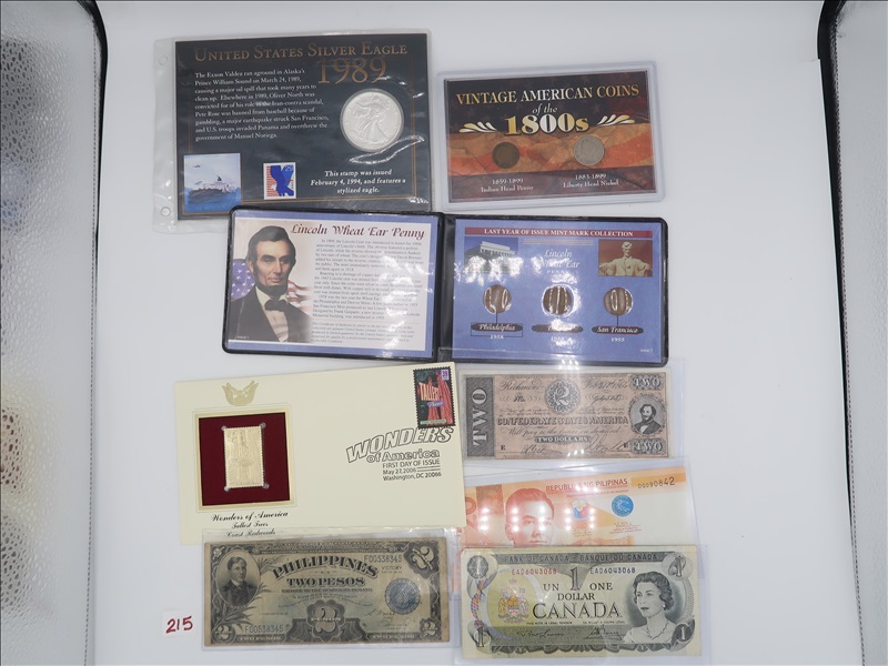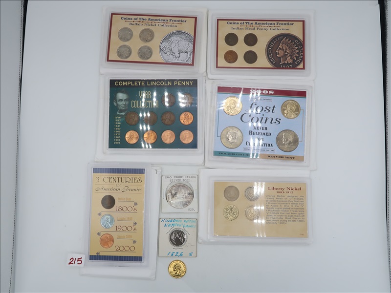 LOT, (1) 1989 SILVER EAGLE DOLLAR (.999 1 OZ SILVER), (1) VINTAGE AMERICAN COINS OF THE 1800'S SET, (1) LAST YEAR OF ISSUE WHEAT PENNY SET(3COINS), (6) AMERICAN COIN TREASURES ASSORTED SETS, (1) 2005 BUFFALO COIN SET (8 COINS), (1) KENTUCKY STATE QUARTER,