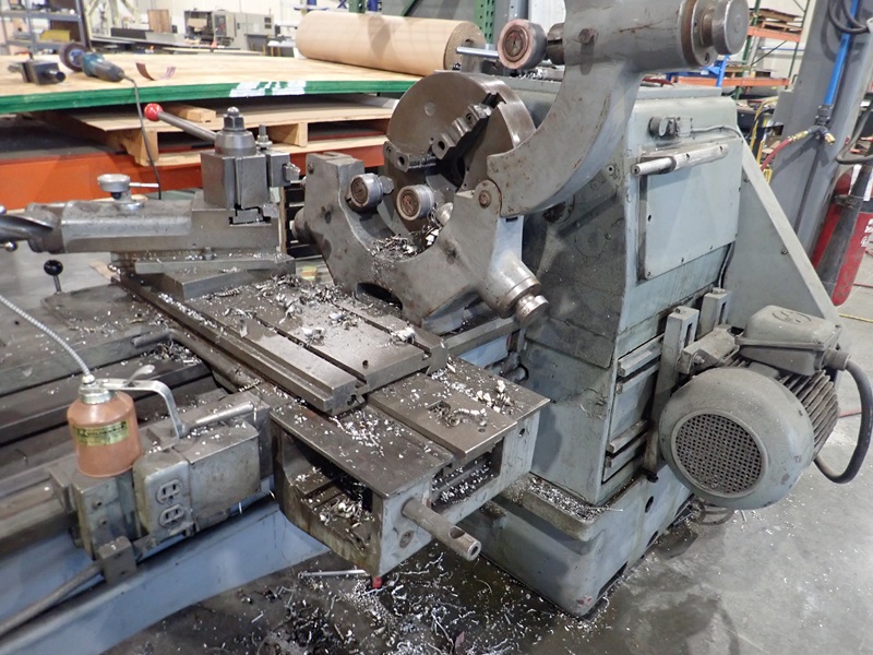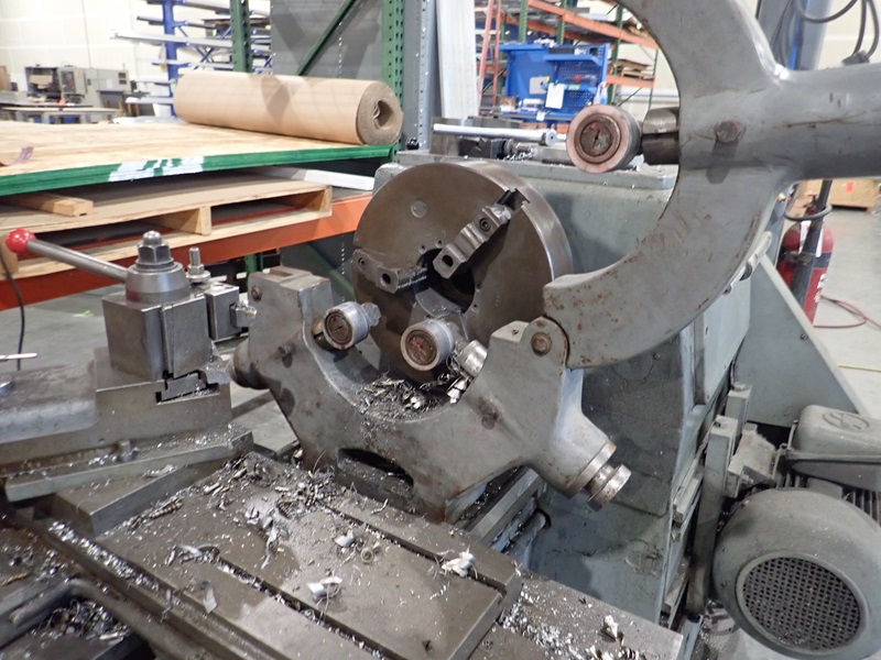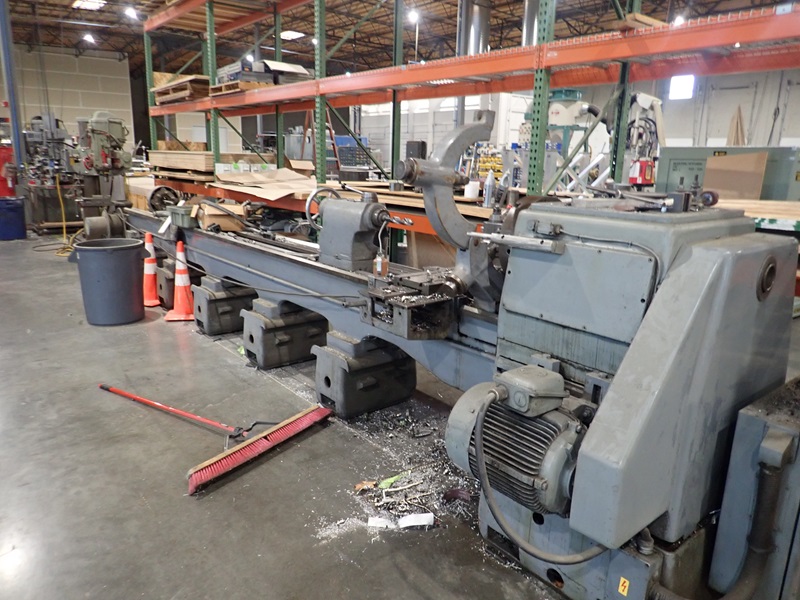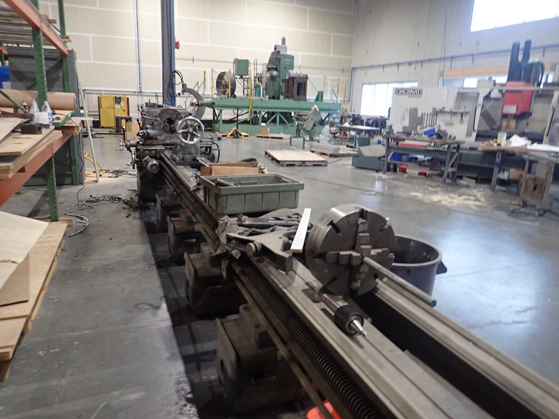 APPROX. 24'X18' LATHE, THRU SPINDLE, 3-JAW CHUCK, TOOL POST, TAIL STOCK, (2) STEADY RESTS, TOOLING