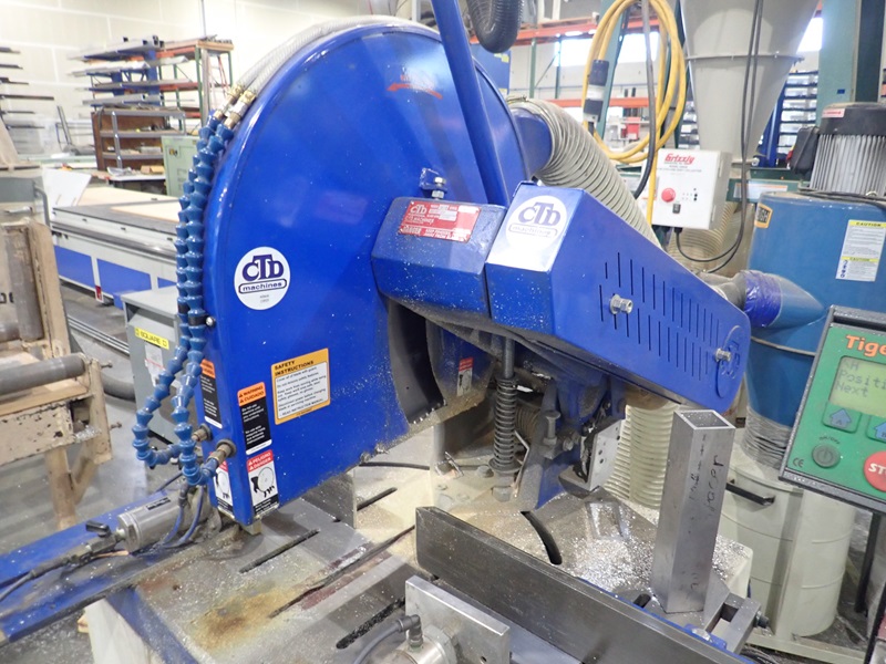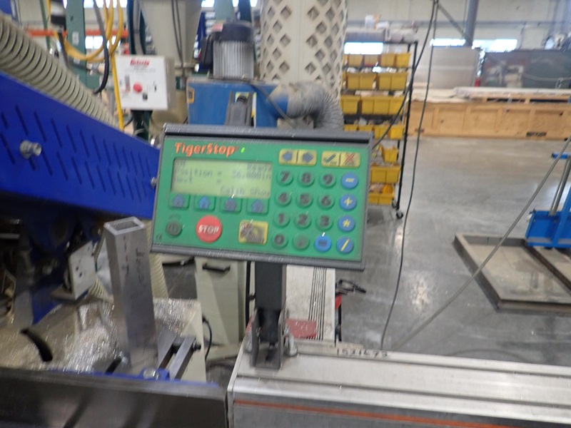 5HP CUTOFF SAW, CLAMPS, TIGERSTOP 14' MEASURING SYSTEM, OUTFEED ROLLS, BAILEIGH DUST COLLECTOR