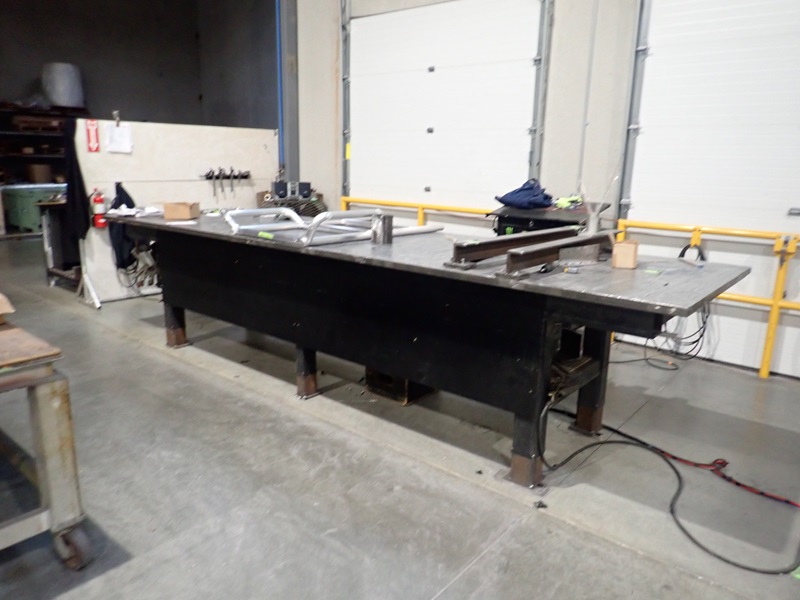 WELDING STATION TO INCLUDE: LINDE WELDER, 48"X180" FAB TABLE, SHELVING, CLAMPS, CART & MISC.