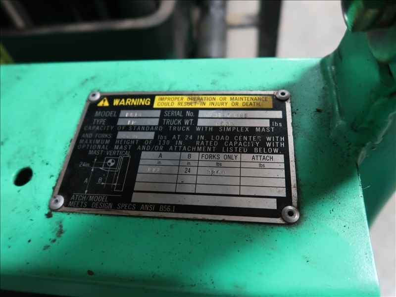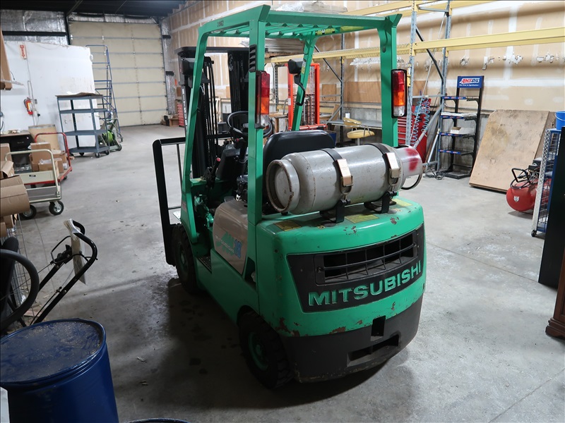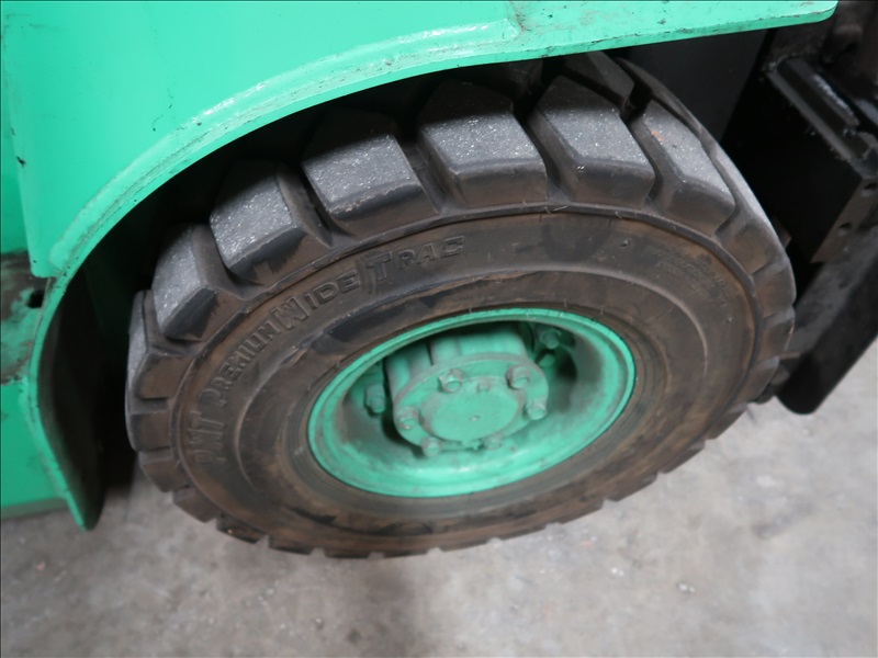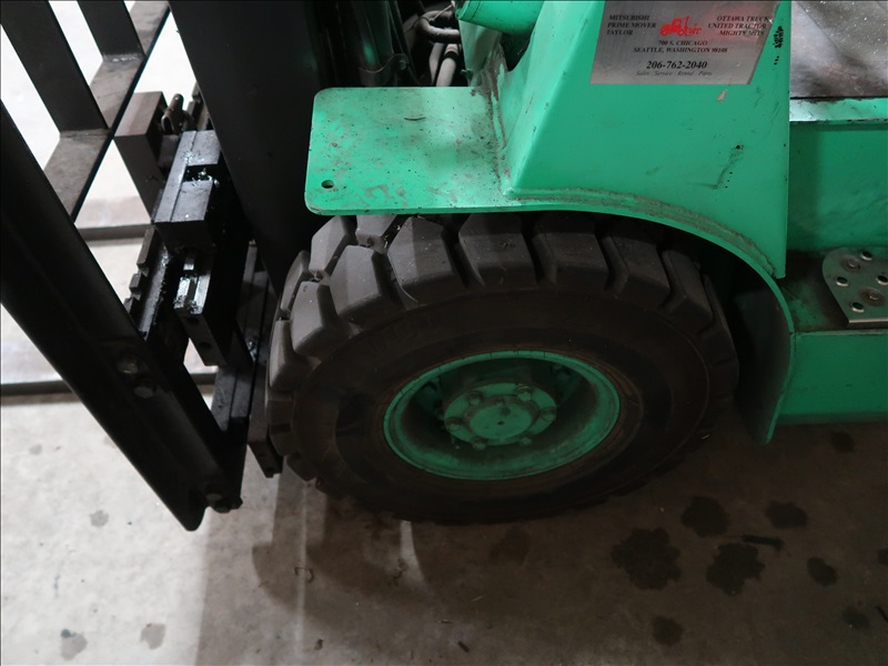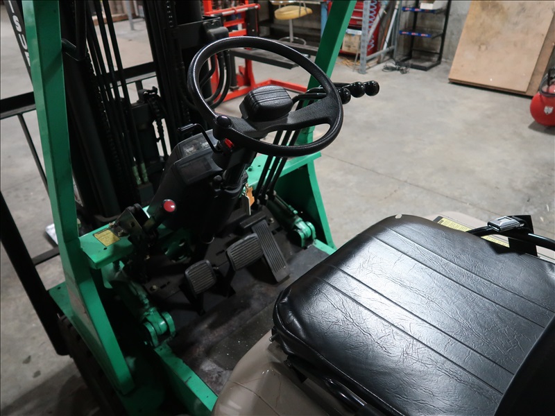 3,500 LB RUBBER TIRE FORKLIFT, PROPANE, SIDE SHIFT, 3-STAGE MAST