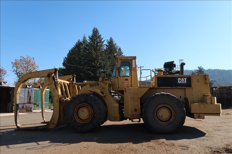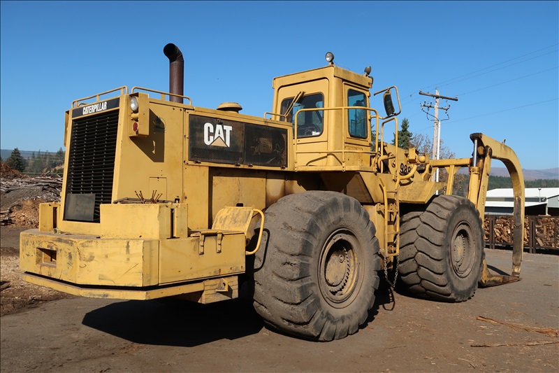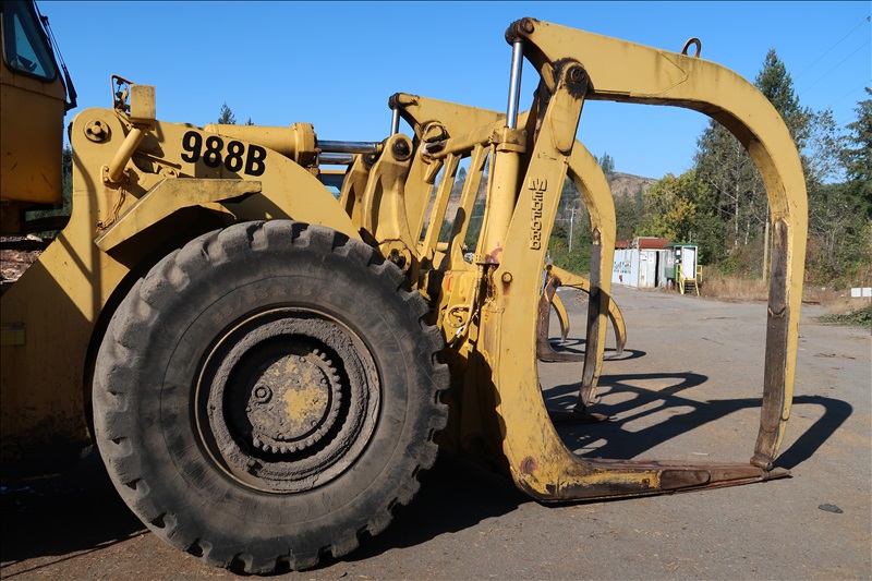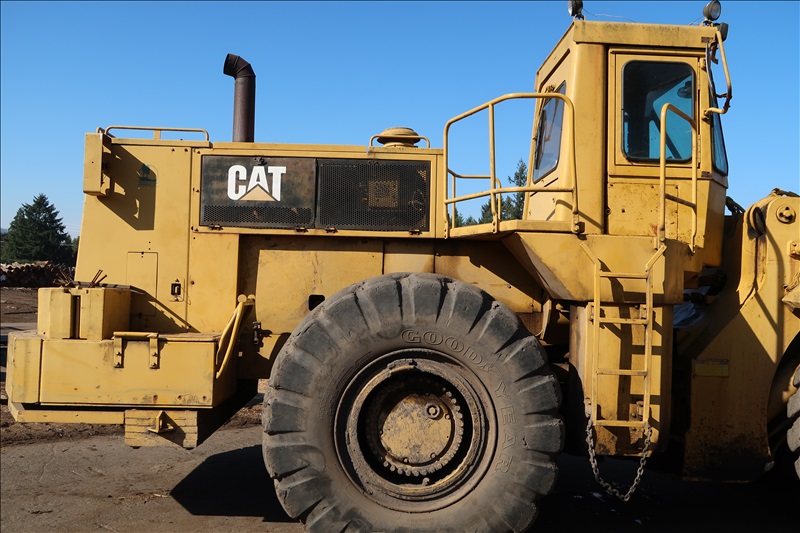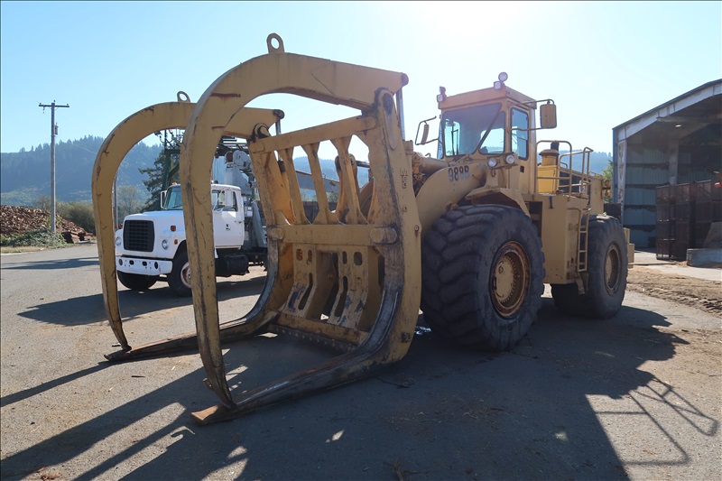 RUBBER TIRE WHEEL LOADER W/MEDFORD FORKS, CAT 3408 DIESEL ENGINE, 4 FORWARD, 4 REVERSE GEARS, 35R/65R TIRES