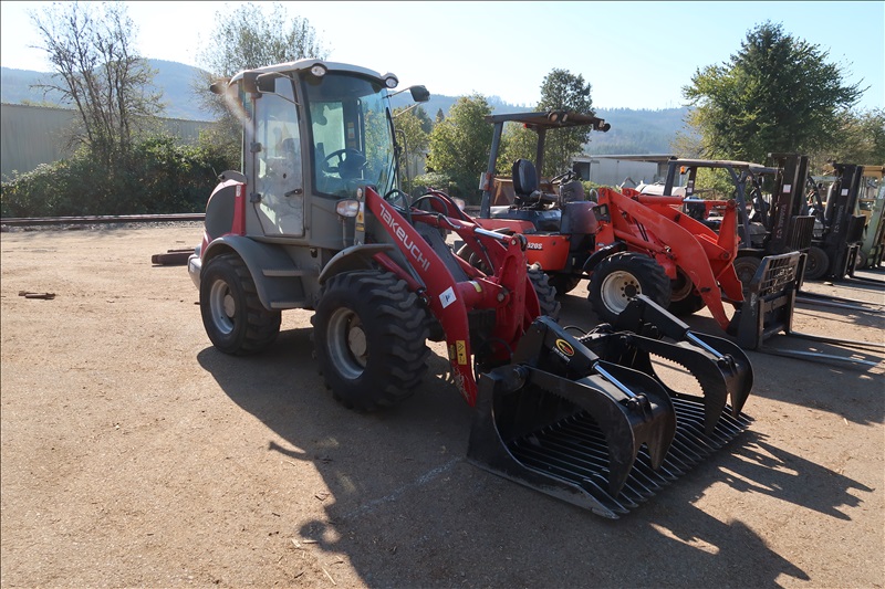 ARTICULATED WHEEL LOADER W/DEUTZ 4-CYLINDER DIESEL ENGINE, QUICK ATTACHMENT BRUSH BUCKET W/TOP CLAMP, ENCLOSED CAB, 15-19.5 TIRES