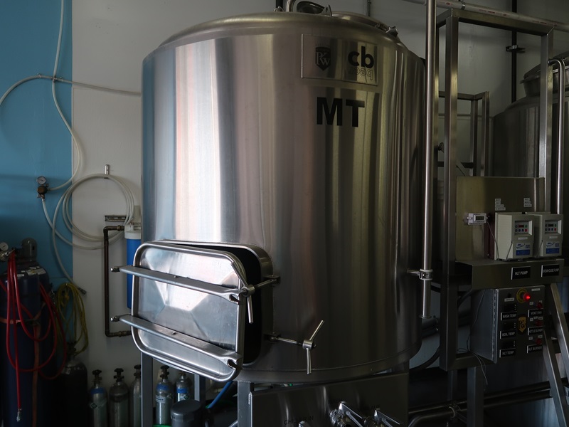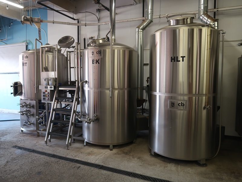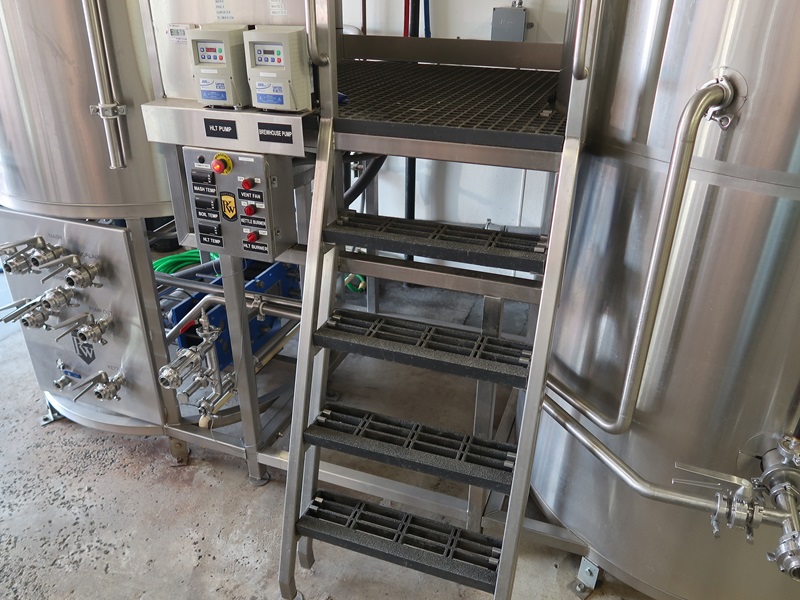 10 BBL 3-VESSEL BREWHOUSE, DIRECT FIRE, OVERSIZEDMASH TUN, THERMALINE 151520CS-21 HEAT EXCHANGER, TRANSFER PUMP, CONTROL PANEL, PIPING AND CATWALK
