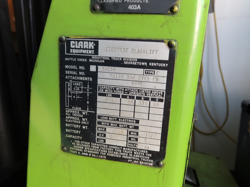ELECTRIC FORKLIFT, CHARGER, SINGLE STAGE MAST, ROPS