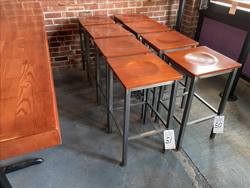 LOT, (4) WOOD SEAT/METAL FRAME BAR STOOLS