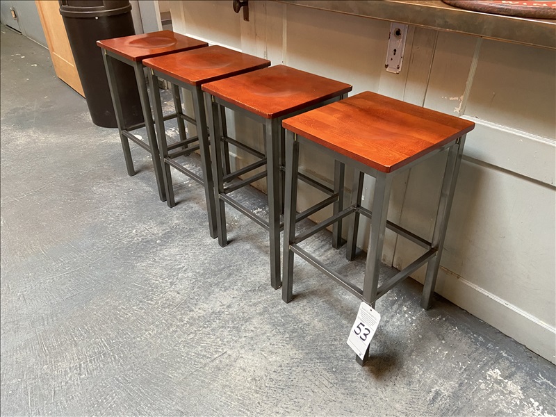 LOT, (4) WOOD SEAT/METAL FRAME BAR STOOLS
