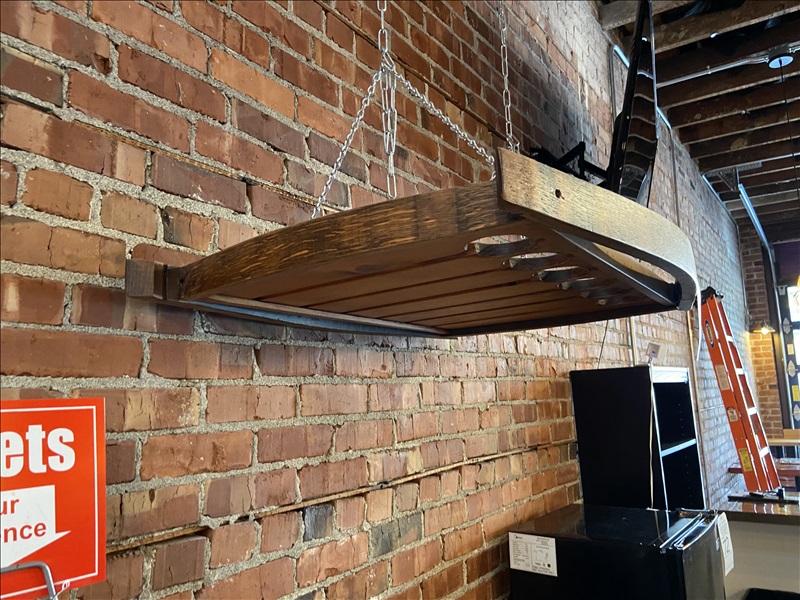 38"W X 27.5"D RECLAIMED WINE BARREL WOOD HANGING STEMMED GLASS RACK