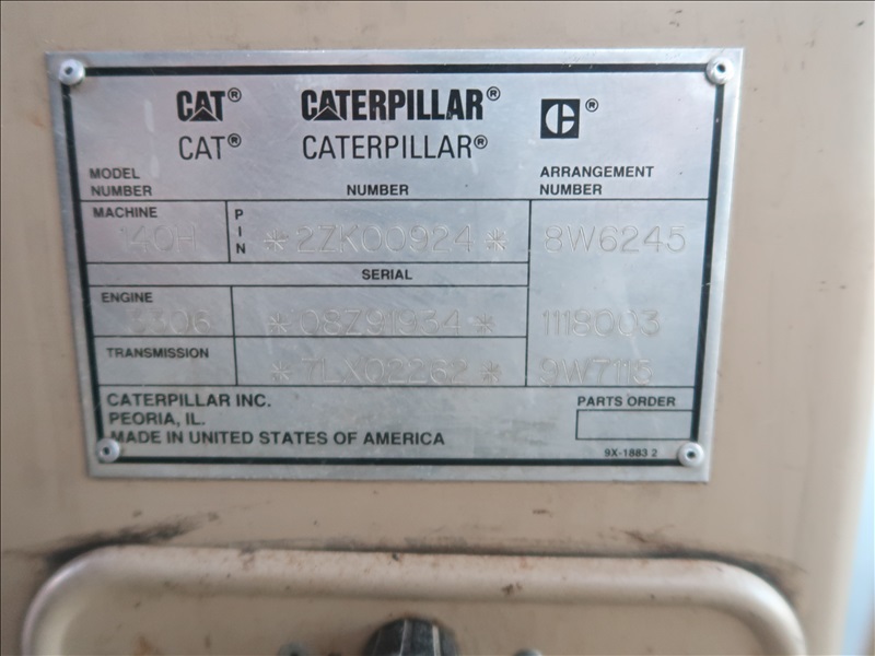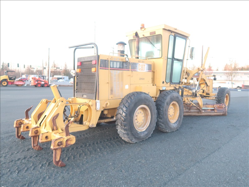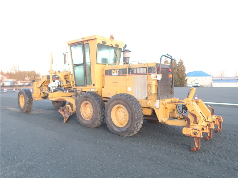 MOTOR GRADER, 185 HP 3306, PUSH BLOCK, 14' MOLD BOARD, MULTI SHANK RIPPER, ACCUMULATORS, TOP CON READY, A/C CAB, 14.00R24 (**HOUR METER REPLACED AT 13,500**)