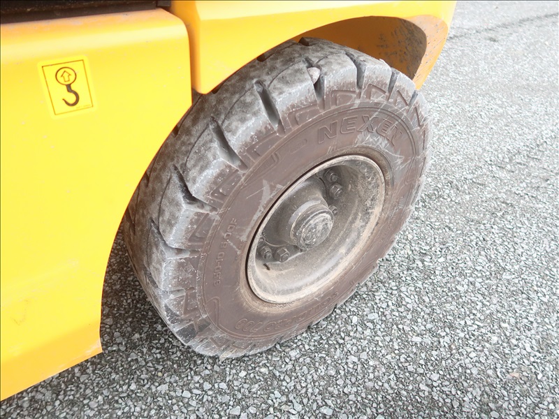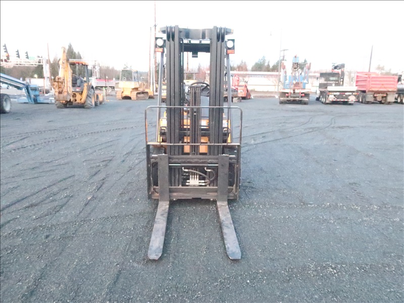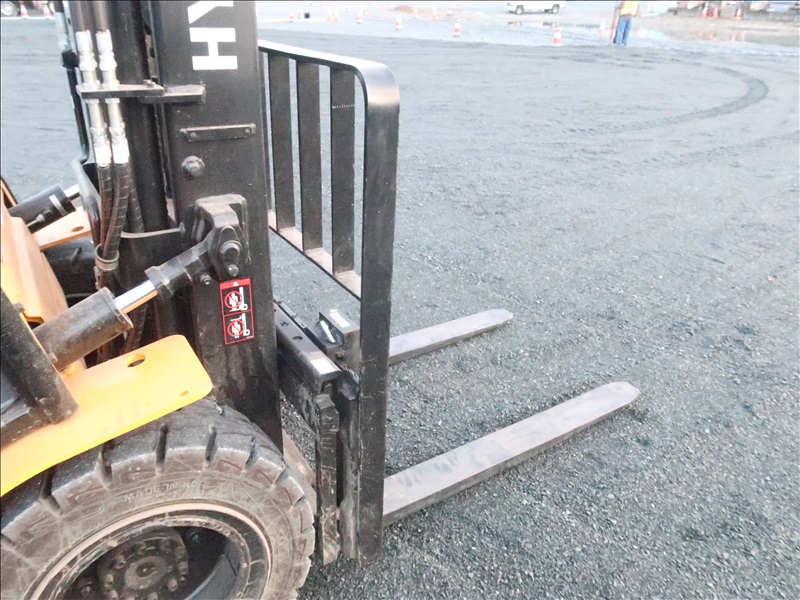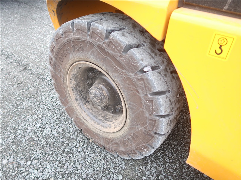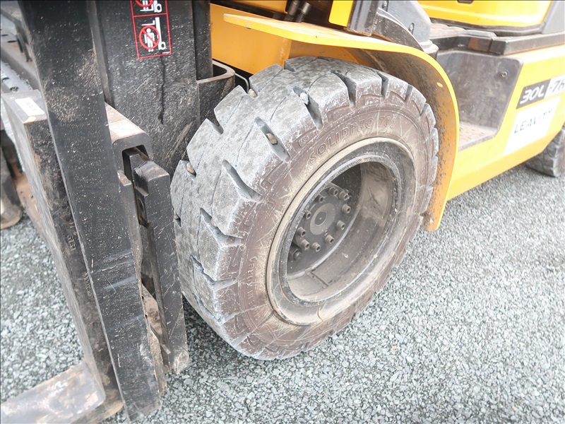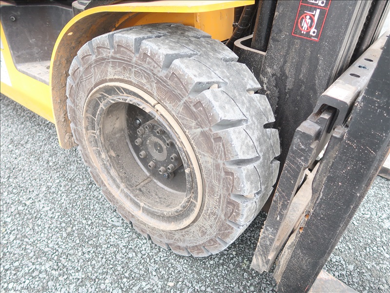5,890 LB SOLID TRACTION TIRE FORKLIFT, 185" FORK HEIGHT, 3-STAGE MAST, SIDE SHIFT, 8' FORKS