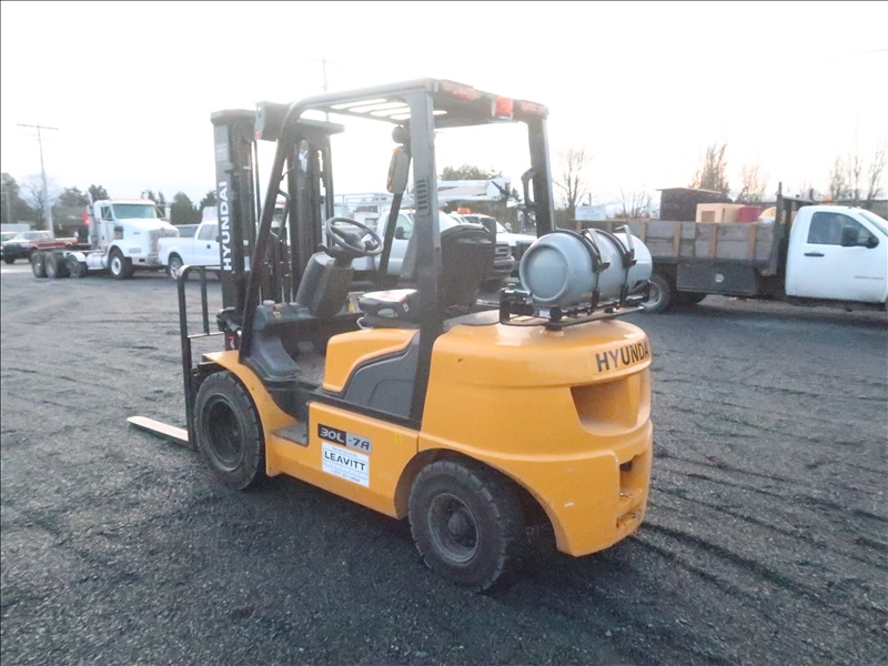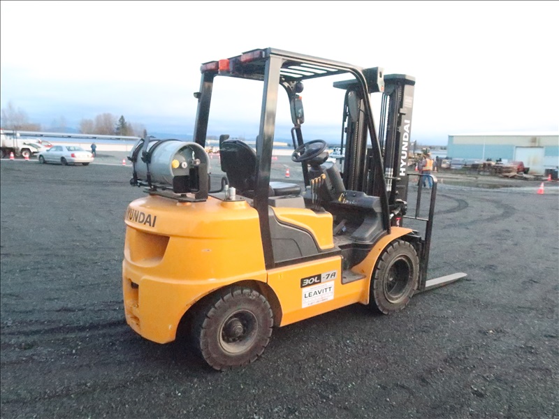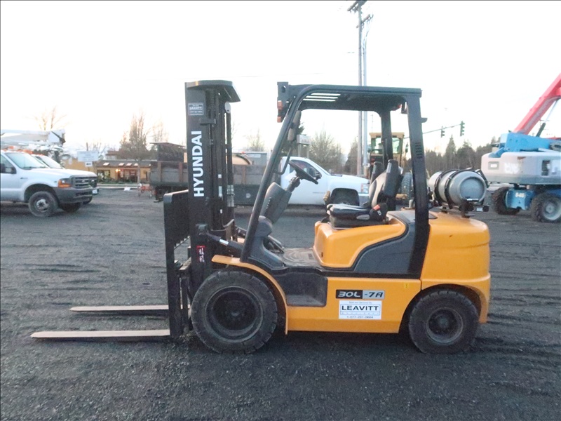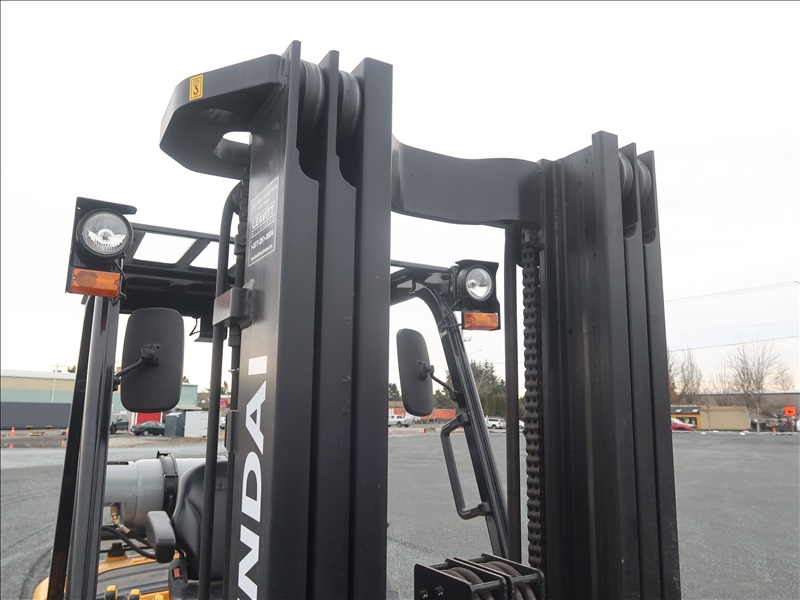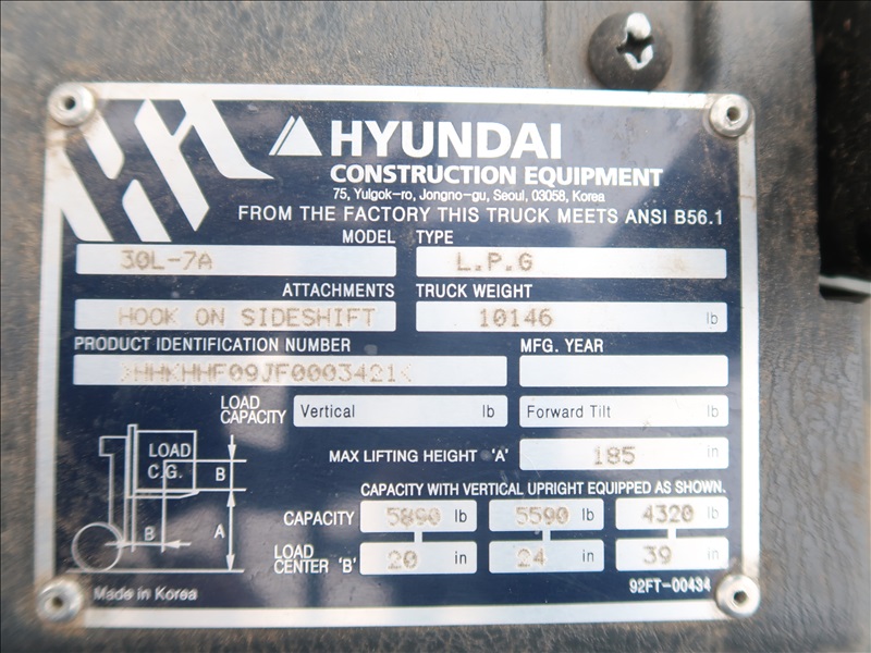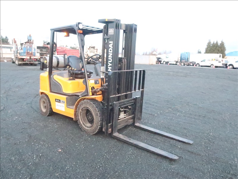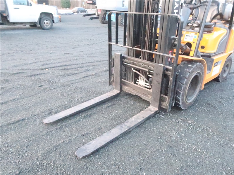 5,890 LB SOLID TRACTION TIRE FORKLIFT, 185" FORK HEIGHT, 3-STAGE MAST, SIDE SHIFT, 8' FORKS