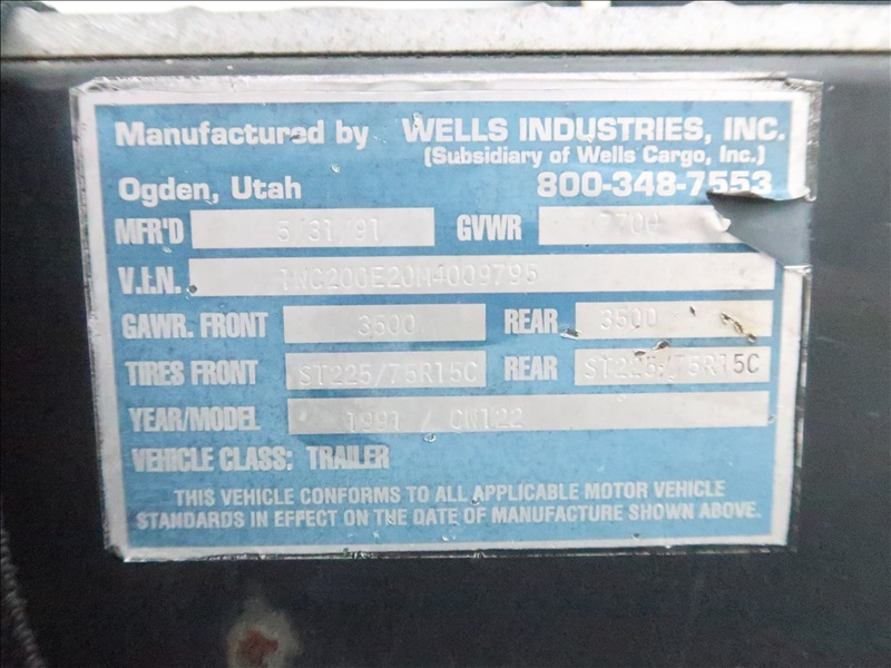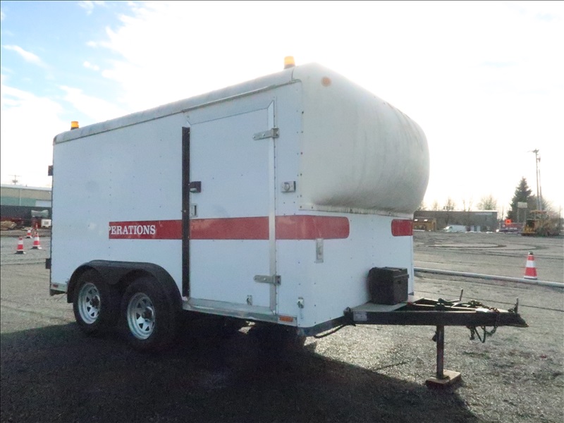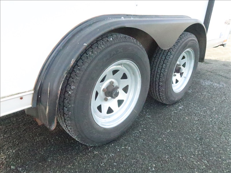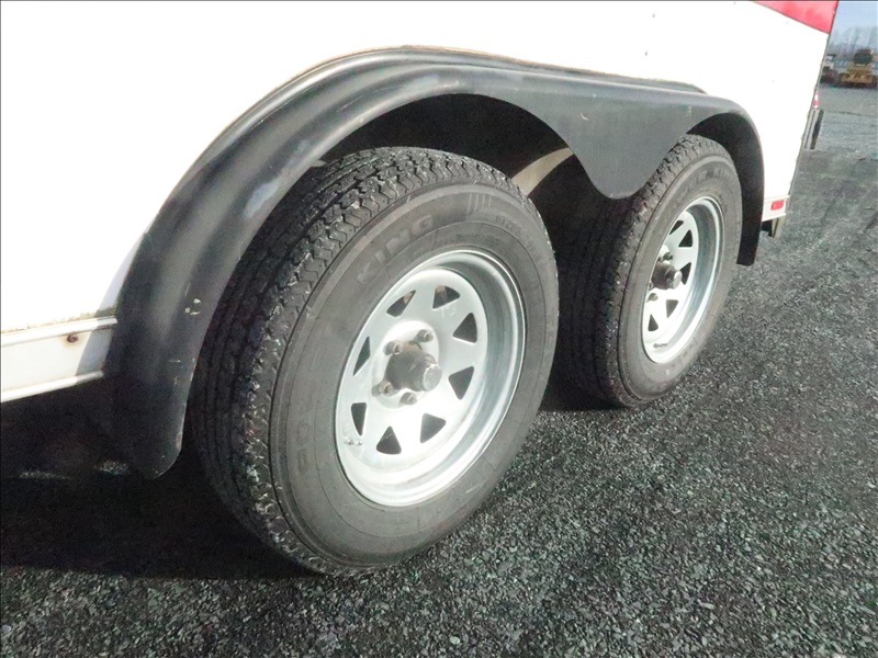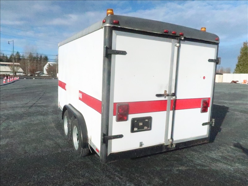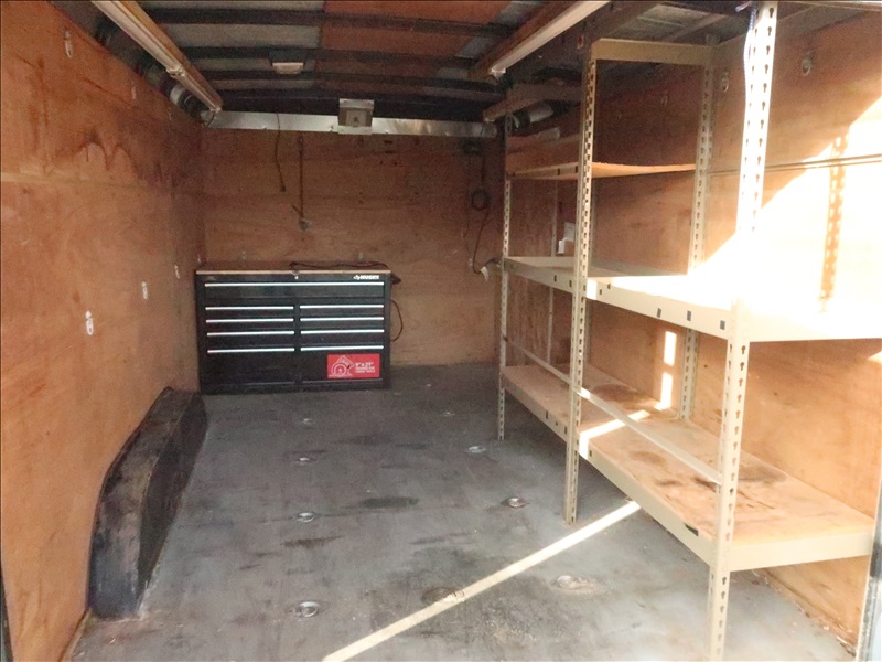 T/A 12' 7,700 LB GVWR ENCLOSED TRAILER, SPRING SUSPENSION, ELECT BRAKES, SIDE DOOR, REAR BARN DOORS, TOOLBOX & SHELVES, 205/75R15