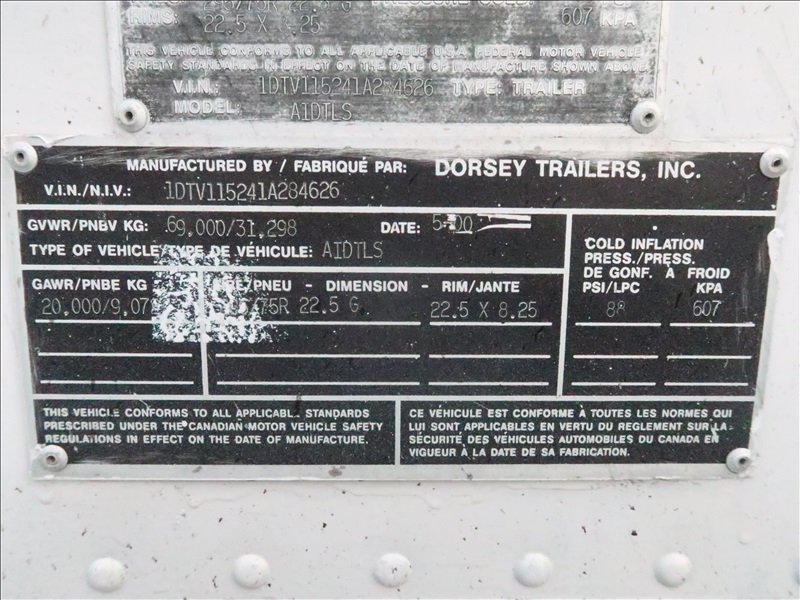 T/A, 53', 69,000 LB GVWR VAN TRAILER, AIR SUSPENSION, A/B, BARN DOORS, 295/75R22.5
