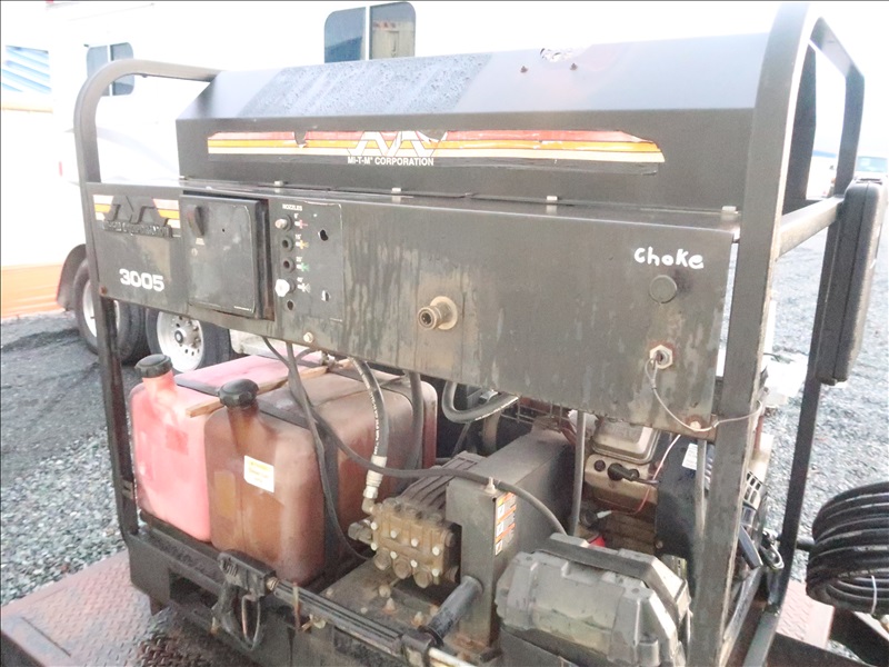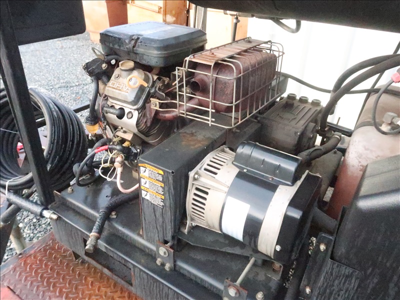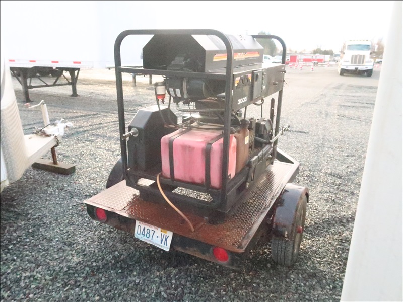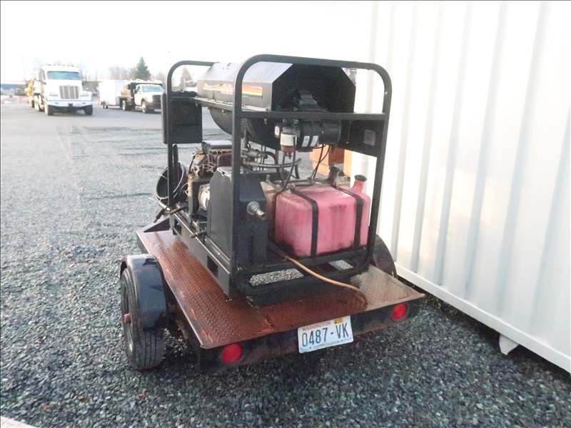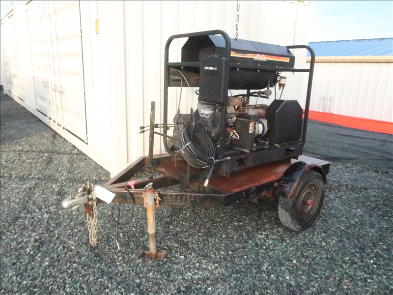 S/A 3,000 PSI TRAILER MOUNTED HOT WATER PRESSURE WASHER, 16 HP GAS, NO 2 FUEL BURNER, HOSE & WAND