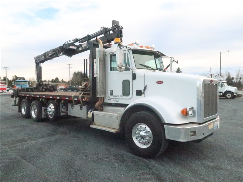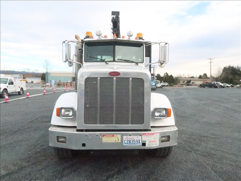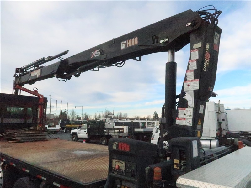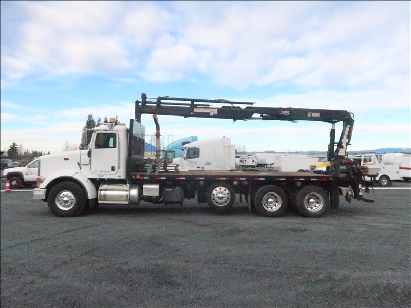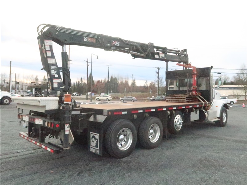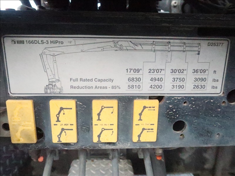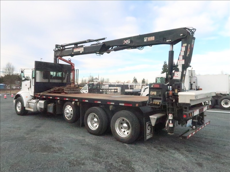 TRI/A, BOOM TRUCK, PACCAR, AUTO, HIAB 166DLS-3 HI PRO, 6,830 LB 36' 9" 4-SECTION BOOM, STABILIZERS, KINSHOFER FORK ATTACHMENT, 20,000 LB FRONT, 45,400 LB REARS, DROP AXLE