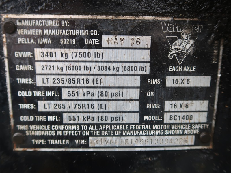 S/A, TRAILER MOUNTED WOOD CHIPPER, CAT 4 CYL DIESEL, HYDRAULIC FEED, WINCH, ELECT BRAKES, 265/75R16