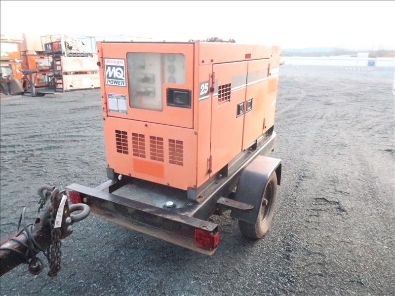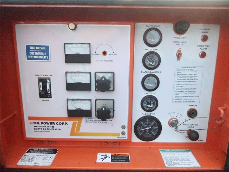S/A 25 KVA TRAILER MOUNTED GENERATOR, ISUZU 4 CYL DIESEL, 120/240/480V, 3 PHASE, 175/80D13 (NEEDS REPAIR, TONGUE COUPLER MISSING PARTS, MISSING OUTLETS, PLEASE PREVIEW)